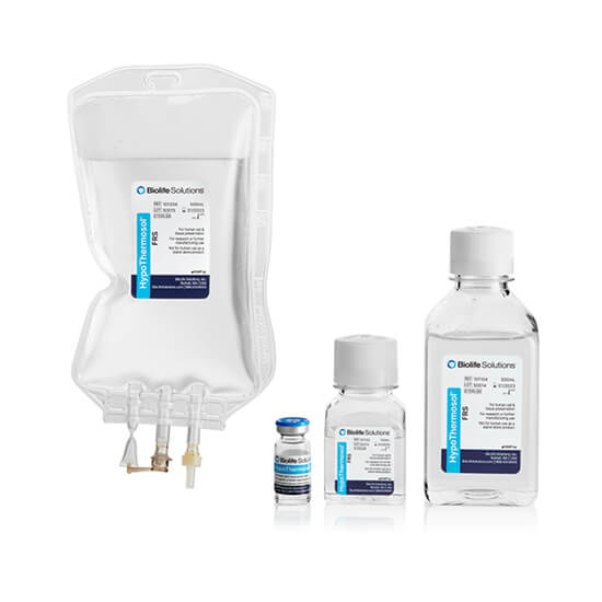HypoThermosol® FRS (HTS-FRS) biopreservation media is a novel, engineered, optimized hypothermic storage and shipping media. It was designed to provide maximum storage and shipping stability for cells and tissues at 2-8°C. HypoThermosol mitigates temperature-induced molecular cell stress that occurs during chilling and rewarming, improving post-thaw viability.
